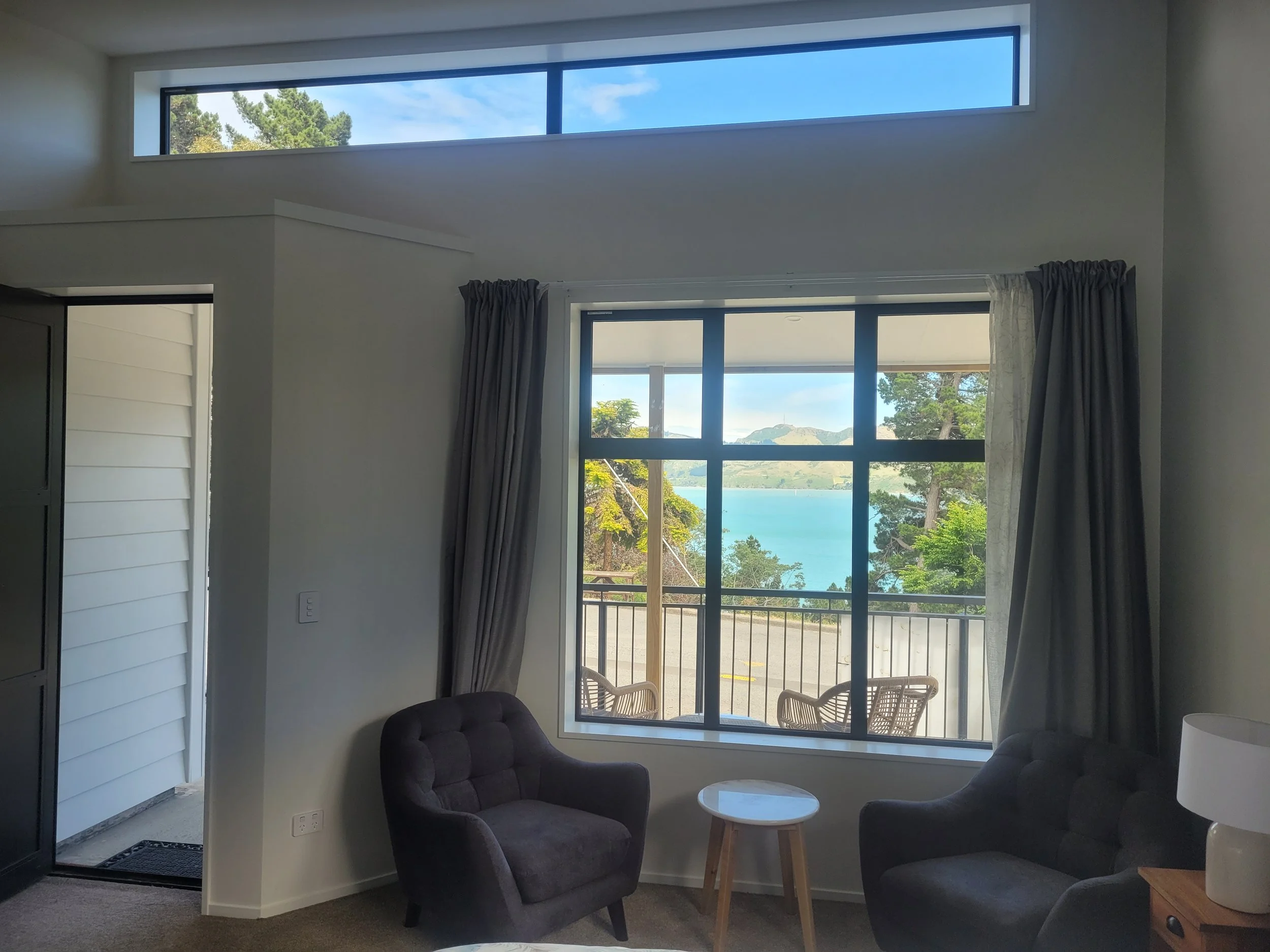 Your room looks out onto Lyttelton Harbour where you can see cruise ship and yachts come and go whilst you sit at your own table on the verandah.